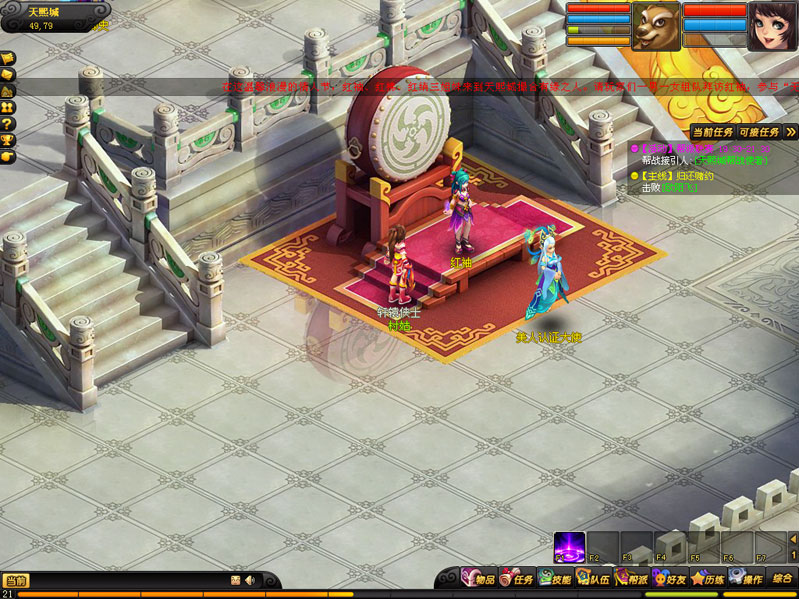 1.找红袖(天熙城54,75)参与活动(坐标)。下面需要完成三个小任务。