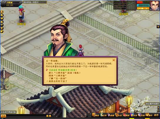 1、找NPC五一劳动使(天熙城213,141)领取任务,按照任务提示依次慰问天熙城的各位劳动者